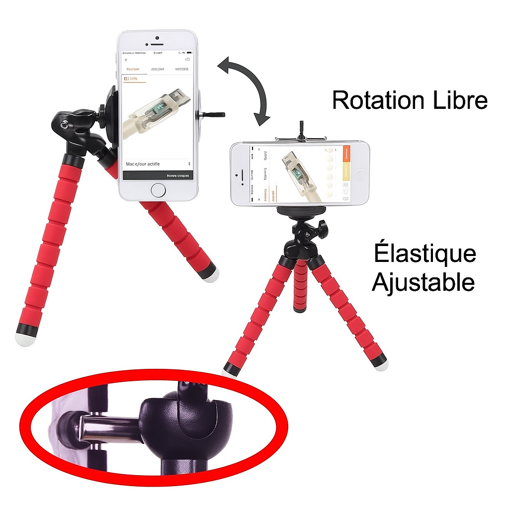 Grâce à ses pieds flexibles et sa rotation à 360°, il s'adapte à toutes les surfaces et maintient vos appareils parfaitement stables - que ce soit un smartphone, une caméra ou un mini projecteur LumoBox.
